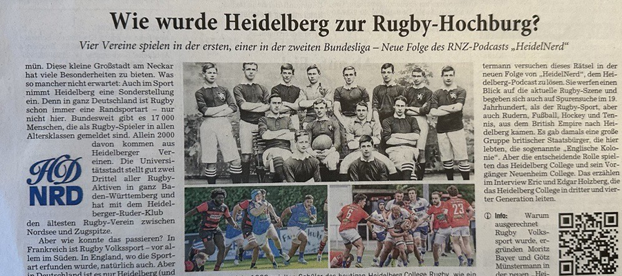 Moritz Bayer, RNZ-Redakteur und selbst Rugby-Sportler, und Götz Münstermann versuchen dieses Rätsel in der neuen Folge von HeidelNerd, dem Heidelberg-Podcast der RNZ zu lösen. Sie werfen nicht nur einen Blick auf die aktuelle Rugby-Szene. Sondern begeben sich auch auf Spurensuche im 19. Jahrhundert, als der Rugby-Sport, aber auch Rudern, Fußball, Hockey und Tennis, aus dem British Empire in eine kleine Universitätsstadt am Neckar kamen. Es gab damals eine große Gruppe britischer Staatsbürger, die hier lebten, die so genannte „Englische Kolonie“. Aber die entscheidende Rolle spielten das Heidelberg College und sein Vorgänger Neuenheim College. Das erzählen im Interview Eric und Edgar Holzberg, die das Heidelberg College in dritter und vierter Generation leiten.